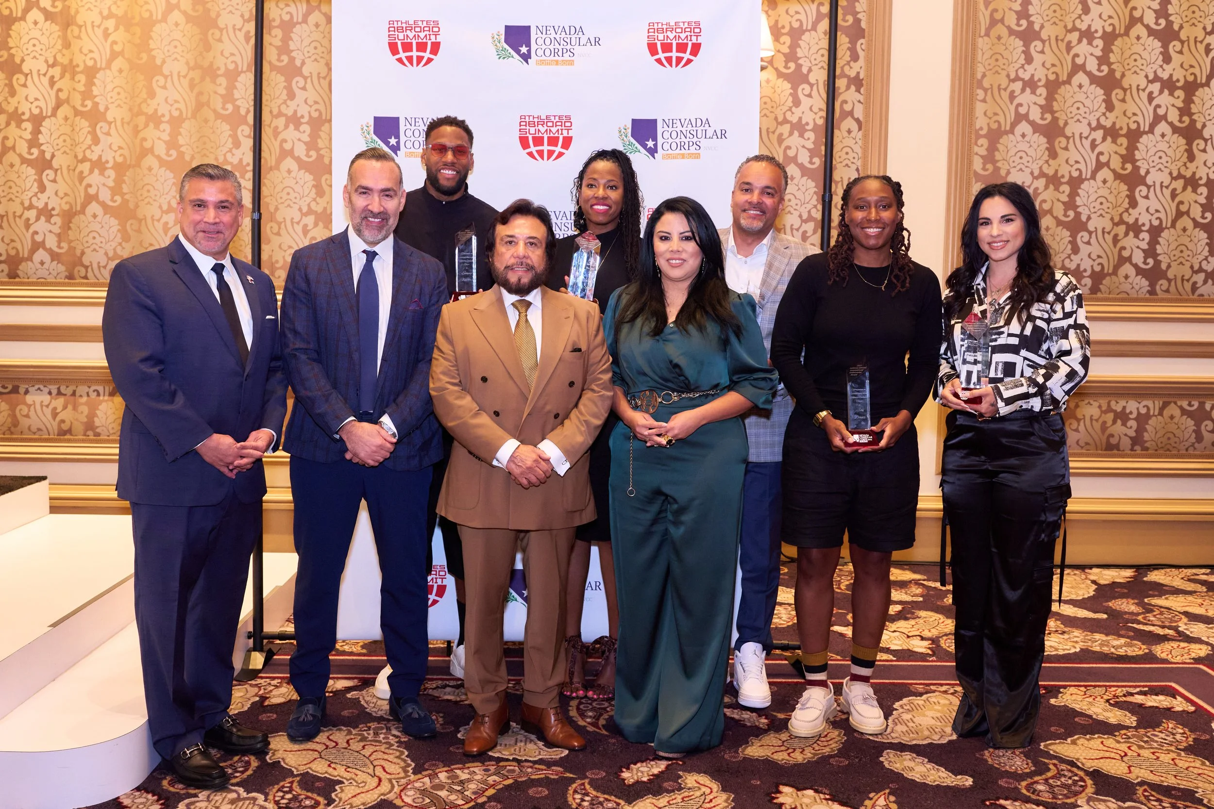 The Athletes Abroad Summit International Ambassador Award - presented by Nevada Consular Corps - honors a distinguished leader who exemplifies excellence in advancing sports diplomacy and fostering meaningful global connections through sport. This award recognizes individuals who have demonstrated a sustained commitment to creating opportunities for athletes across borders, while promoting cultural exchange, collaboration, and mutual understanding within the international sports community.